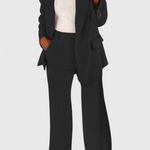 Transita sin esfuerzo de la oficina al tiempo libre con el Conjunto Kaia de 2 Piezas. Confeccionado con una tela ultra suave y transpirable, este dúo de chaqueta y pantalón combina una estructura ajustada con una elegancia relajada. Perfecto para la mujer moderna que valora la comodidad sin comprometer el estilo.