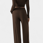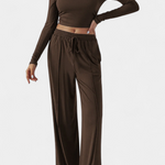 Comodidad activa con un toque estiloso. El conjunto Celaena está diseñado para moverse contigo durante tus sesiones de yoga o entrenamientos diarios, combinando tejido ligero de viscosa con un ajuste elástico y favorecedor. Su diseño sin forro y escote redondo lo hace ideal para mantener la frescura mientras te concentras en cada movimiento.