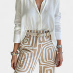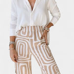 El lujo relajado se encuentra con la versatilidad cotidiana en el Conjunto Calla. Con su top de cuello suavemente estructurado y fondos a juego, este dúo ligero aporta elegancia y comodidad a cualquier momento, ya sea relajándose, viajando o saliendo con un estilo discreto.