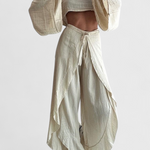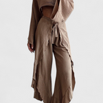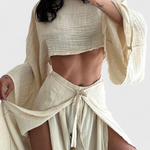 Bohemio y ligero, el conjunto Elsie une un top kimono con pantalón cruzado para un look cómodo, elegante y perfecto para climas cálidos o vacaciones con estilo.