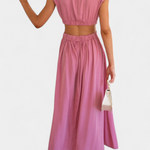 Un conjunto que redefine la elegancia con líneas puras y detalles estratégicos. Jocelyn fusiona un diseño de escote alto con aberturas laterales y una silueta fluida que estiliza con sutileza. Ideal para eventos de temporada, cenas veraniegas o momentos donde el estilo arquitectónico y el frescor se encuentren.