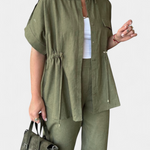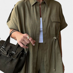 Sofisticación sin esfuerzo para el día a día. El conjunto Lani está pensado para acompañarte con ligereza y estilo, gracias a su camisa fluida de corte relajado y pantalones rectos que se mueven contigo. Su diseño versátil se adapta a cualquier momento con una elegancia natural y desenfadada.
