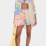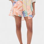 Inspiración costera con un toque de frescura vibrante. El conjunto Lumina combina una camisa tipo boyfriend de corte amplio con unos shorts de cintura alta, todo en un tejido transpirable con estampado tropical. Su silueta fluida y su aire relajado lo convierten en la opción perfecta para los días de sol y desconexión con estilo.