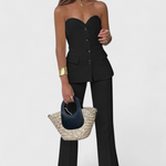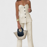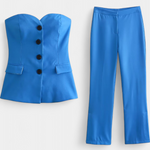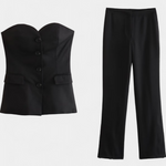 Comodidad sin esfuerzo con un aire depurado, el conjunto Paesha une una blusa sin mangas de corte limpio con pantalones amplios que fluyen con naturalidad. Su diseño minimalista y relajado se adapta a la rutina con versatilidad y frescura refinada.