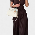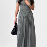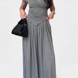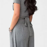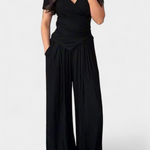 Comodidad contemporánea con un aire femenino. El conjunto Ruslana combina suavidad y estilo en una silueta relajada que se adapta a cualquier ritmo. Su top cruzado realza la figura con naturalidad, mientras que los pantalones amplios fluyen con libertad, creando un look ideal para moverse con gracia en cualquier ocasión informal.