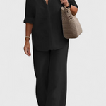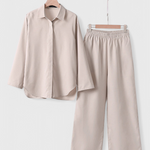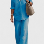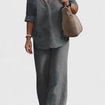 Simplicidad refinada con una silueta que respira frescura y naturalidad. El conjunto Skye fusiona una camisa de botones holgada con pantalones de cintura elástica, ambos confeccionados en una mezcla ligera de algodón y lino. Una combinación versátil que equilibra confort, estilo y funcionalidad para tu día a día.