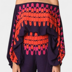 El conjunto Sybella combina una blusa con hombros descubiertos y mangas de farol con pantalones de pierna ancha y estampado artístico. Diseñado para ofrecer una silueta fluida con personalidad, es perfecto para días soleados, escapadas relajadas o encuentros con estilo.