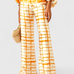 El conjunto Sybella combina una blusa con hombros descubiertos y mangas de farol con pantalones de pierna ancha y estampado artístico. Diseñado para ofrecer una silueta fluida con personalidad, es perfecto para días soleados, escapadas relajadas o encuentros con estilo.