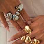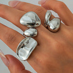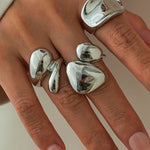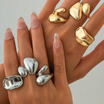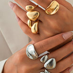 Moderno y expresivo, este conjunto de anillos irregulares de metal exhibe formas orgánicas y líneas escultóricas. Cada pieza aporta un toque artístico a tu look, perfecta para apilar o usar sola para resaltar tu estilo único.