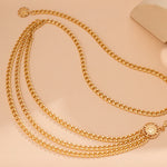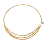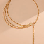 Impactante y sofisticada, la Cadena de Cintura en Capas está diseñada para acentuar la cintura con un glamour sin esfuerzo. Con múltiples cadenas delicadas, se drapea hermosamente sobre vestidos o estilos de cintura alta, añadiendo definición y brillo a cualquier look especial.