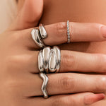 Elegante y versátil, este juego de anillos de metal de 4 piezas ofrece un estilo sin esfuerzo con un toque moderno. Cada anillo presenta un diseño distinto, lo que te permite mezclar, combinar o apilarlos según tu estado de ánimo y atuendo.