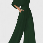 Isaura Mono Largo Elegante con Pierna Ancha y Escote en V