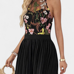 • Parte superior tipo halter con encaje floral semitransparente que realza el torso