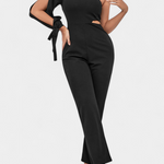 Con un estilo audaz y sofisticado, el mono Sahar combina una silueta asimétrica con detalles modernos que realzan tu figura. Su diseño de un solo hombro, la abertura lateral y la manga con lazo crean un equilibrio perfecto entre estructura y sensualidad, ideal para una noche especial o un evento elegante.
