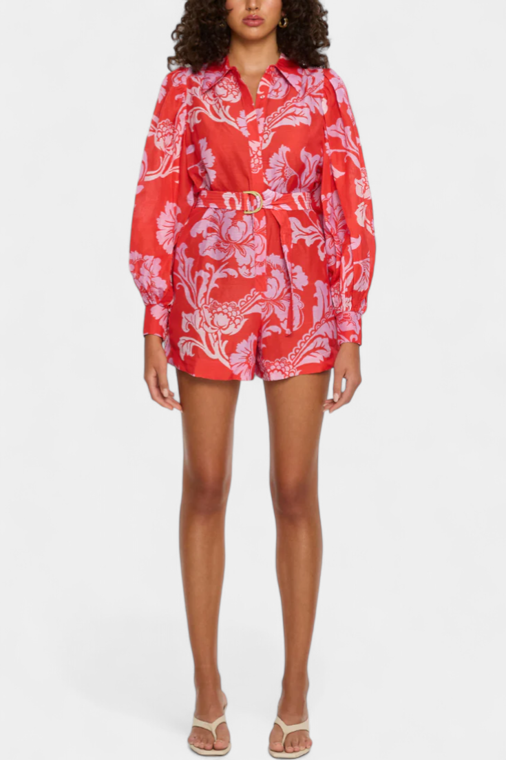 Frescura, encanto y definición en una sola prenda. Suzanne resalta con su vibrante estampado floral y su cinturón a juego que enmarca delicadamente la cintura. Una silueta cómoda y favorecedora, diseñada para acompañarte con alegría bajo el sol.