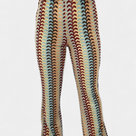 Audaz, cómodo y con mucho estilo. El pantalón Carlie destaca por su estampado ondulado multicolor y su tejido de spandex elástico que se adapta a tu figura con suavidad. Su corte acampanado y cintura alta alargan visualmente las piernas, creando un look moderno con guiños vintage. Ideal para elevar un outfit casual con personalidad.
