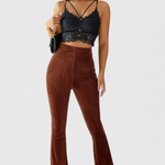 Toque vintage con estilo actual—los pantalones Liset fusionan la textura suave de la pana con un corte acampanado que estiliza y aporta movimiento. Perfectos para looks casuales o más refinados, ofrecen una silueta favorecedora y versatilidad para todo el día.