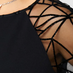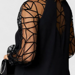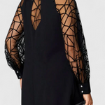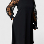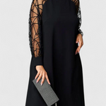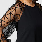 Bellezza Vestido Negro con Mangas de Malla y Corte Holgado