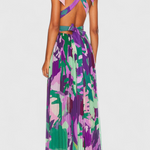 Cecil Vestido Largo Plisado con Estampado Acuarelado y Espalda Descubierta