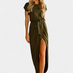 Sofisticación relajada para cada momento del día. El vestido Clarissa destaca por su corte envolvente que define la silueta con gracia, mientras que su caída fluida y la abertura lateral le dan un aire moderno y favorecedor. Un básico refinado para días cálidos y citas especiales.