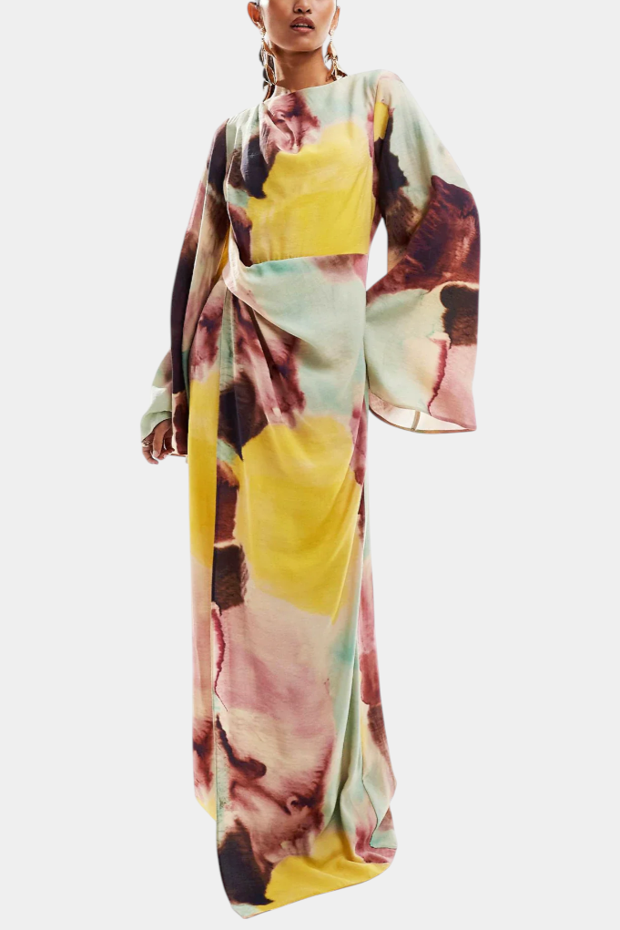 Audaz y artístico, el Vestido Dana aporta una elegancia digna de galería a tu armario. Con un estampado de acuarela vibrante, mangas acampanadas y un giro frontal escultural, esta silueta maxi fluye con presencia y modernidad en cada movimiento.