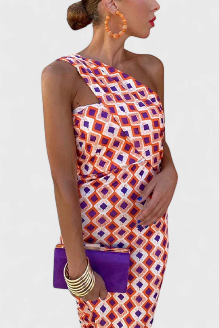 Una silueta deslumbrante para brillar en cada ocasión especial. El vestido Julissa combina una elegancia moderna con un diseño asimétrico que enmarca la figura con sofisticación. Su escote diagonal y corte ceñido acentúan las curvas con delicadeza, mientras su tejido ligero ofrece frescura para las noches de verano.