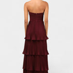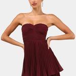Romántico, etéreo y diseñado para deslumbrar con cada movimiento. El vestido June combina un escote corazón sin tirantes con una falda de volantes plisados que fluye con gracia. Su cintura entallada define la figura, creando una silueta envolvente ideal para ocasiones especiales.