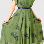 Lupita Vestido Midi de Chiffon Verde con Corte en A