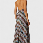 Melisa Vestido Largo Halter con Zigzag Lamé y Acabado Iridiscente