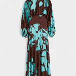 Monte Vestido Largo con Aberturas en Mangas y Estampado Abstracto