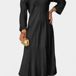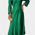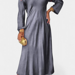 Elegante, versátil y atemporal, el vestido Riva destaca por su sencillez sofisticada. Su silueta fluida, escote en V y mangas largas crean una prenda que se adapta con naturalidad tanto a celebraciones como a cenas con estilo relajado.