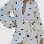 Romara Vestido Mini de Lunares con Manga Larga y Cintura Entallada