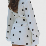 Estilo relajado con un toque vintage que captura miradas con cada paso. El vestido Romara destaca con su silueta cruzada, mangas largas abullonadas y un encantador estampado de lunares sobre fondo marfil. Una pieza versátil que mezcla ligereza, estructura y actitud lúdica.