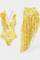Luce radiante bajo el sol con el conjunto Ahria, una fusión perfecta de frescura, estilo y feminidad. El bañador entero presenta un delicado estampado de lirios amarillos con apliques florales que aportan textura y encanto. Acompañado de un cubresol ligero a juego, es la elección ideal para brillar con elegancia.