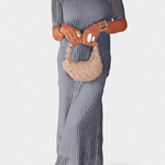 Un diseño etéreo que une ligereza, sofisticación y modernidad. El vestido Balbina destaca por su corte de dos piezas que evoca libertad y estilo. El top de cuello barco con aberturas delicadas equilibra elegancia y sensualidad, mientras que la falda aireada aporta movimiento y frescura a cada paso.