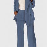 Transita sin esfuerzo de la oficina al tiempo libre con el Conjunto Kaia de 2 Piezas. Confeccionado con una tela ultra suave y transpirable, este dúo de chaqueta y pantalón combina una estructura ajustada con una elegancia relajada. Perfecto para la mujer moderna que valora la comodidad sin comprometer el estilo.