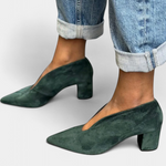 Sofisticados y versátiles, los tacones Hazel aportan un aire refinado con su tonalidad verde oscuro y su silueta atemporal. Su tacón grueso ofrece equilibrio entre estilo y comodidad, convirtiéndolos en la opción perfecta tanto para la oficina como para salidas nocturnas con un toque distintivo.