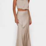 Vibrante y llamativo, este conjunto de falda está diseñado para destacar con su top drapeado de cuello halter, detalles delicados y una silueta que fluye con elegancia. Ofrece una sensación ligera y sofisticada que se mueve maravillosamente contigo.