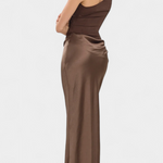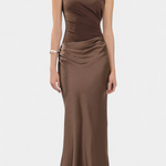Diseñado para destacar con una elegancia atemporal, este vestido largo plisado combina sofisticación y presencia en cada movimiento. Su escote de un solo hombro aporta un toque moderno y refinado, mientras que los delicados pliegues caen con fluidez para esculpir una silueta imponente y femenina. Un look pensado para momentos que exigen distinción y seguridad.