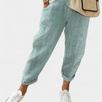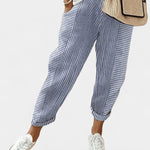 La comodidad y el estilo se unen en los Pantalones a Rayas Alba: tu elección ideal para días cálidos y un vestuario sin esfuerzo. Confeccionados con una mezcla de lino transpirable y un ajuste relajado, ofrecen comodidad durante todo el día sin comprometer la apariencia. La cintura elástica con cordones ajustables garantiza un ajuste personalizado, mientras que los prácticos bolsillos laterales añaden funcionalidad diaria.