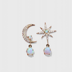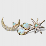 Celestiales y encantadores, estos pendientes en tono dorado presentan un delicado diseño de luna y estrella acentuado con piedras de ópalo luminosas. Perfectamente equilibrados entre la fantasía y la elegancia, aportan un brillo soñador a tu look, de día o de noche.